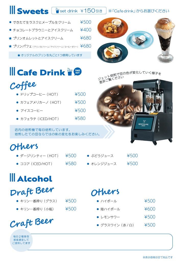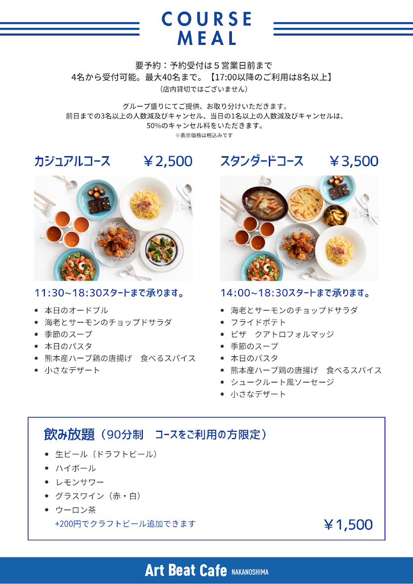 Art Beat Cafe NAKANOSHIMA アート ビート カフェ 中之島【アート・ランチ・貸切宴会】 Menu